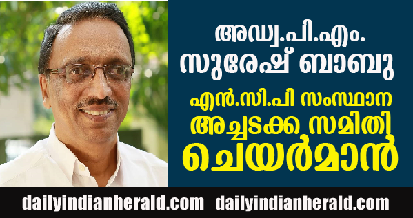 കൊച്ചി : നാഷണലിസ്റ്റ് കോൺഗ്രസ് പാർട്ടിയുടെ (എൻ.സി.പി.) വൈസ് പ്രസിഡണ്ട് അഡ്വ. പി.എം സുരേഷ് ബാബു എൻ.സി.പി സംസ്ഥാന അച്ചടക്ക സമിതി ചെയർമാനായി നിയമിതനായി.