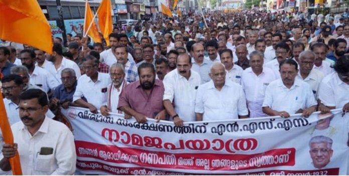 കൊച്ചി: എന്എസ്എസിന്റെ നാമജപ ഘോഷയാത്രക്കെതിരായ കേസ് പിന്വലിക്കാന് നീക്കം. സര്ക്കാര് നിര്ദേശത്തെ തുടര്ന്നാണ് നീക്കം. പൊലീസ് നിയമ സാധുത പരിശോധിച്ചു. ഘോഷയാത്രയില് അക്രമം ഉണ്ടായിട്ടില്ലെന്നു ചൂണ്ടിക്കാണിക്കാനാണ് നീക്കം. തുടര്നടപടി അവസാനിപ്പിക്കുന്നതായി കോടതിയില് റിപ്പോര്ട്ട് നല്കുന്നത് സര്ക്കാര് ആലോചിക്കുകയാണ്. കേസ് ഹൈക്കോടതി പരിഗണിക്കുന്നതിനാല് പിന്വലിക്കല് അസാധ്യമെന്ന് സംശയമുണ്ടെങ്കിലും നിയമോപദേശത്തിന് ശേഷം അന്തിമ തീരുമാനമെടുക്കും. പുതുപ്പള്ളി ഉപതെരഞ്ഞെടുപ്പിന് മുന്പ് എന്.എസ്.എസിന്റെ നീരസം മാറ്റാനാണ് സര്ക്കാര് നീക്കം.