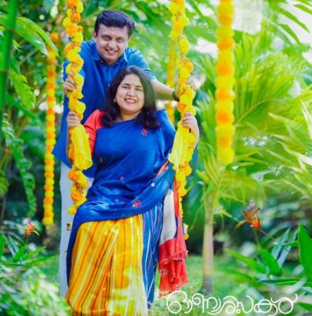 റിയാസും വീണയും നീല തീമിലുള്ള പുതുവസ്ത്രമാണ് അണിഞ്ഞിരിക്കുന്നത്. മുണ്ടും ഷര്ട്ടുമാണു റിയാസിന്റെ വേഷം. നീലയും മഞ്ഞയും ചുവപ്പും നിറങ്ങള് ചേരുന്ന സാരിയാണു വീണ ധരിച്ചിട്ടുള്ളത്. ഇരുവരും സന്തോഷത്തോടെ ചിരിക്കുന്ന മനോഹര ചിത്രത്തിനൊപ്പം ‘ഓണാശംസകള്’ എന്നും എഴുതിയിട്ടുണ്ട്. മന്ത്രിമാരും എംഎല്എമാരും നേതാക്കളും പാര്ട്ടി പ്രവര്ത്തകരും സാധാരണക്കാരും ഫോട്ടോയ്ക്കു താഴെ മന്ത്രികുടുംബത്തിന് ആശംസകള് അറിയിച്ചു.